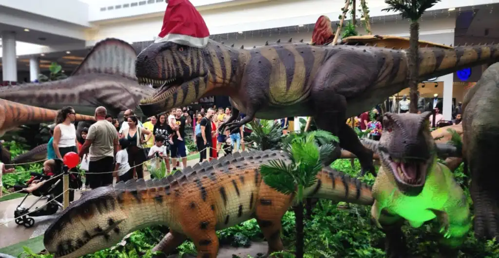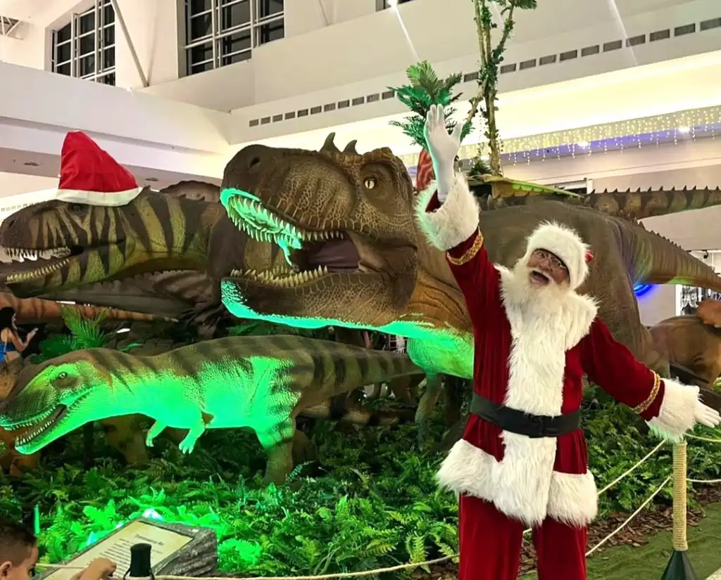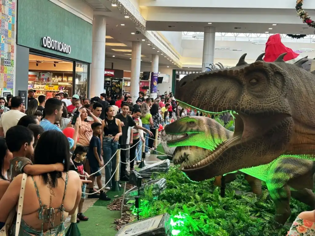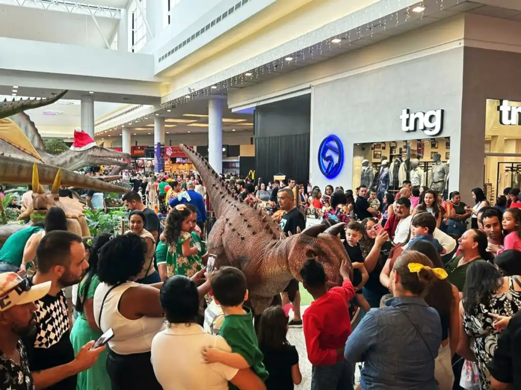 Papai Noel e dinossauros encantam o público no “Natal de Aventuras” do Shopping Pátio Pinda