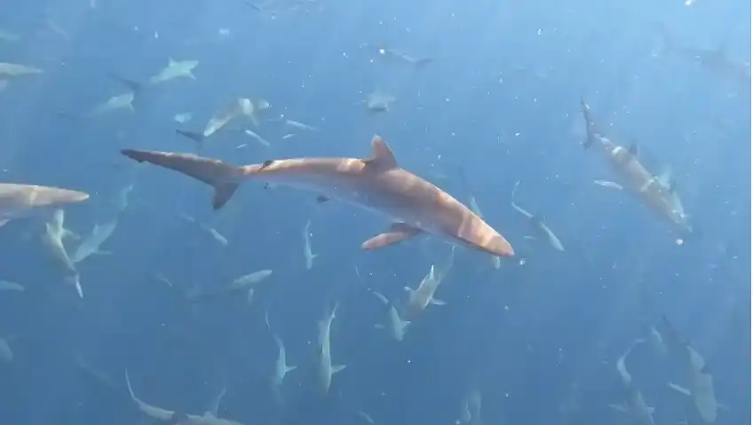 Um cardume com mais de 100 tubarões foi avistado no Arquipélago de Alcatrazes, por pesquisadores da unidade conservação federal administrada pelo Instituto Chico Mendes de Conservação da Biodiversidade (ICMBio), esta semana no arquipélago de Alcatrazes, em São Sebastião.