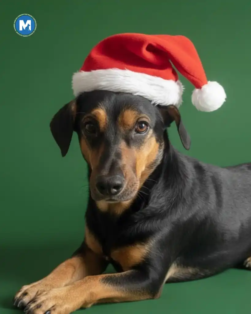 O cartão de Natal digital traz a foto, as informações e o desejo do pet: “Querido Papai Noel, sou a ADELE, tenho 1 aninho. Quero muito uma família… ou uma vacina. Feliz Natal”.