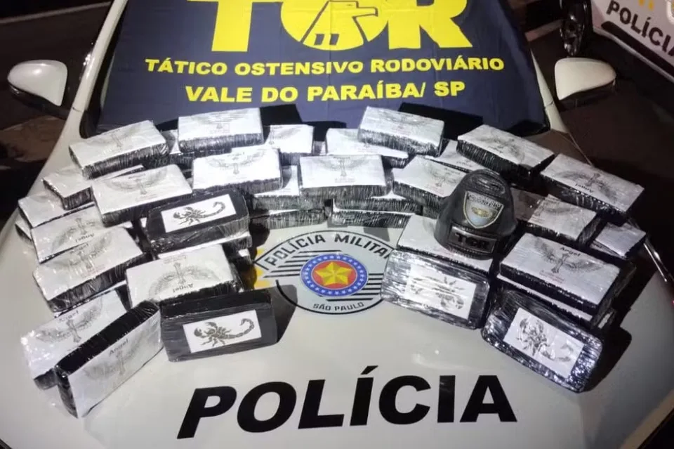 A Polícia Militar Rodoviária apreendeu 55 tijolos de pasta base de cocaína e quatro de crack na praça do pedágio da Rodovia Carvalho Pinto, em São José.