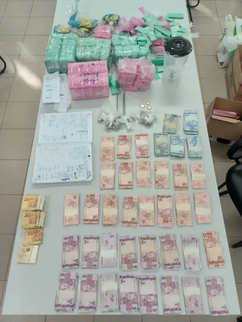 Os policiais apreenderam mais de 12 quilos de drogas, incluindo porções de maconha, cocaína, crack e haxixe. Além disso, foram confiscadas duas armas de fogo, três veículos, uma balança de precisão, jóias e itens de luxo. Também foram encontrados R$ 20,3 mil em dinheiro, além de valores em moeda estrangeira: 1.100 euros e 120 dólares.