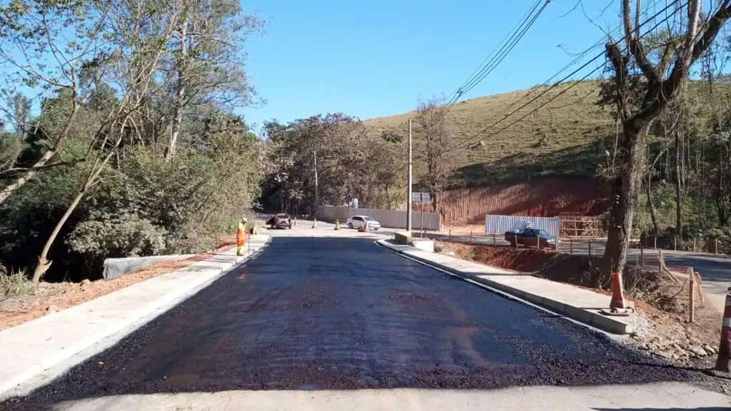 A obra está em fase de impermeabilização do pavimento, aplicação de asfalto e pintura viária, restando somente a limpeza e liberação da via.