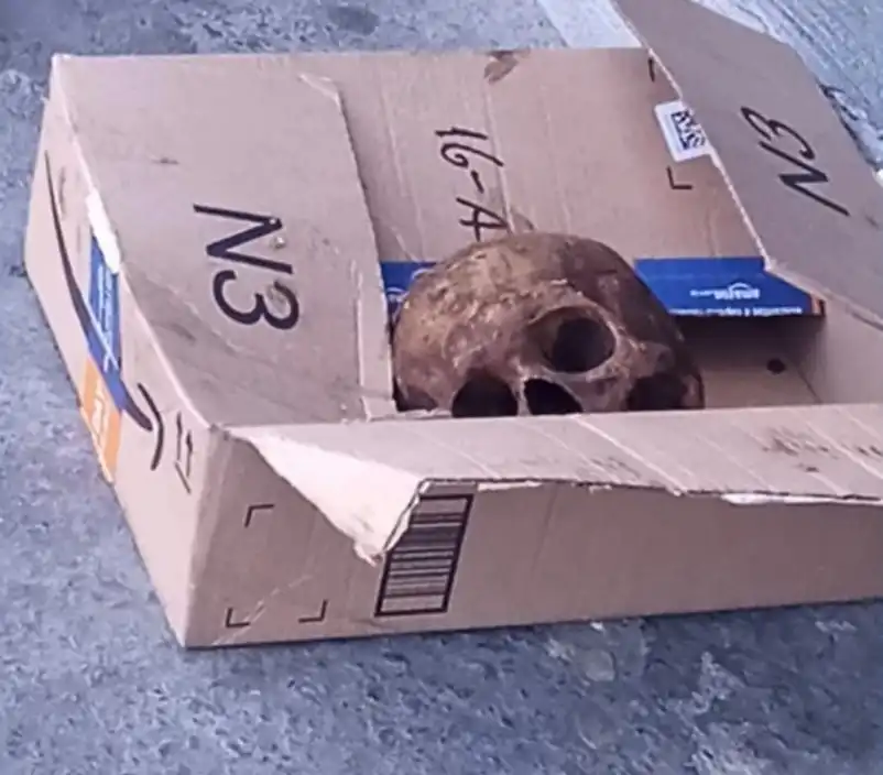 Segundo o comerciante, ele viu um homem deixando a caixa de papelão e indo embora. Ao aproximar-se e abrir a caixa, encontrou o crânio. Ele acionou a polícia e disse que o homem suspeito não voltou ao local.