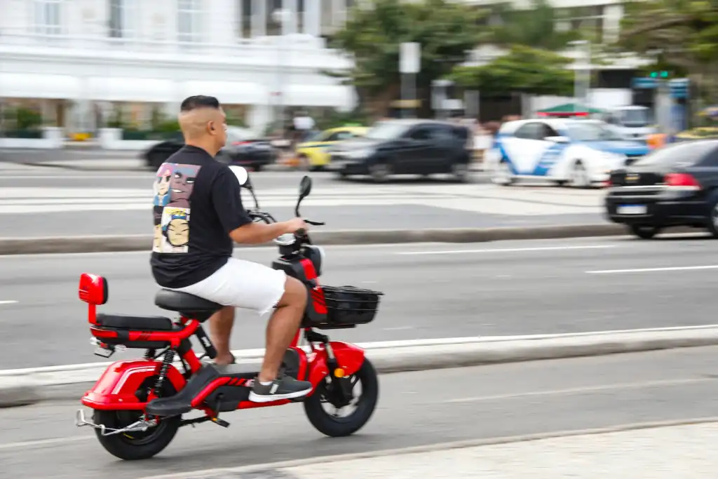 O uso de capacete é obrigatório para condutor e passageiro. Também são exigidos equipamentos como retrovisor esquerdo, sinalização noturna, campainha, pneus em boas condições e limitador eletrônico de velocidade.