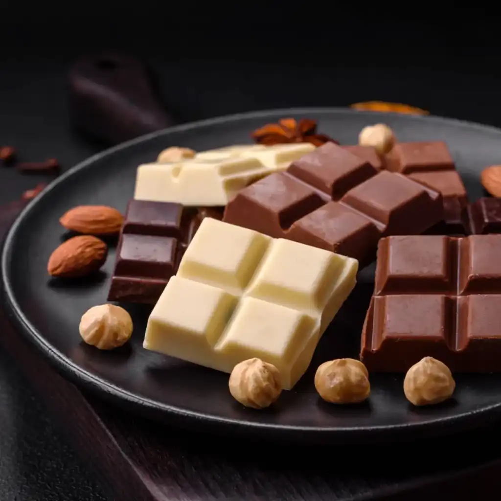 • Chocolate branco: 20% de manteiga de cacau e mínimo de 14% de leite;