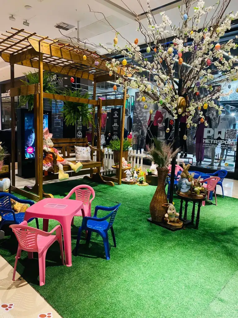 Os pequenos poderão participar das atividades a partir das 15h. Um espaço instagramável foi montado exclusivamente para as fotos ao lado do Coelhinho da Páscoa, próximo à loja de brinquedos Ri Happy, ao lado do Espaço Diversão.