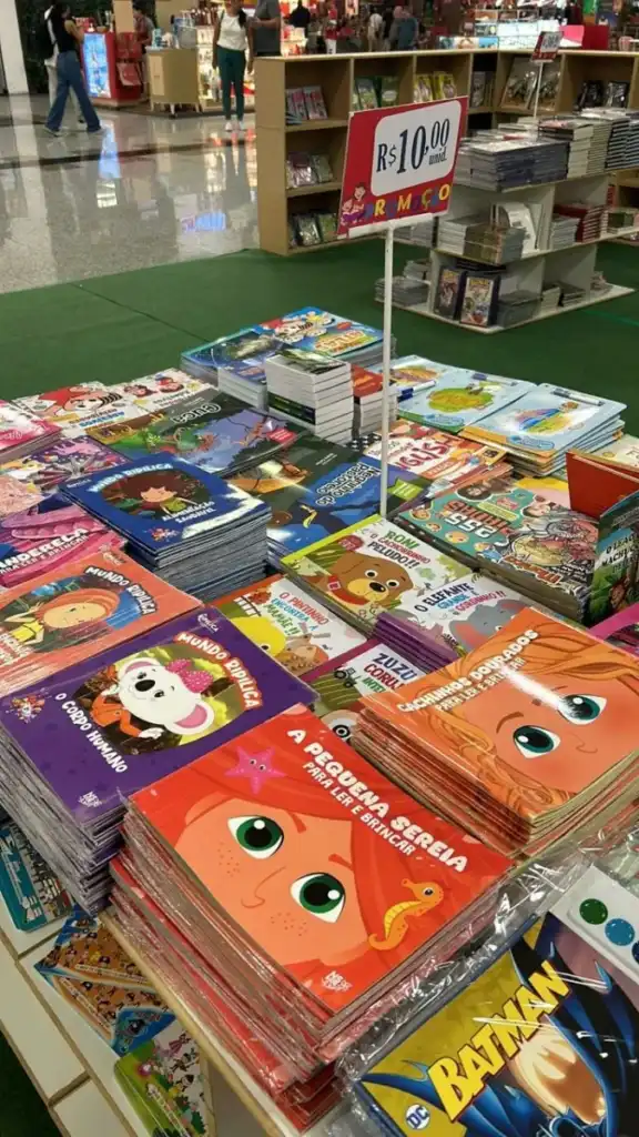 Para as crianças, livros da turma da Mônica, Barbie, Patrulha Canina, Hot Wheels e outros mais.