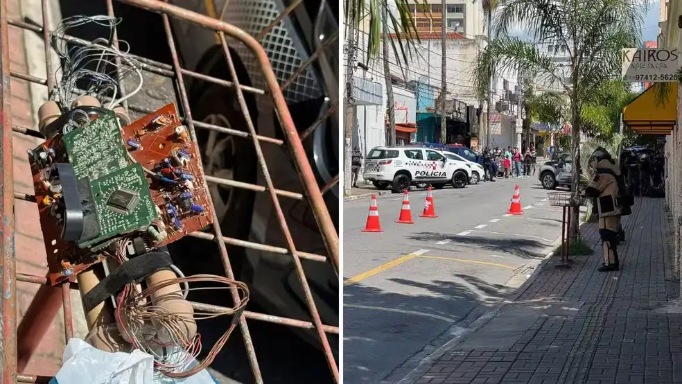 De acordo com a Polícia Militar o GATE e o Corpo de Bombeiros foram acionados por volta das 10h30 com relato de que um objeto encontrado na lixeira fosse uma bomba. O artefato era feito de canos, fios e uma placa eletrônica.