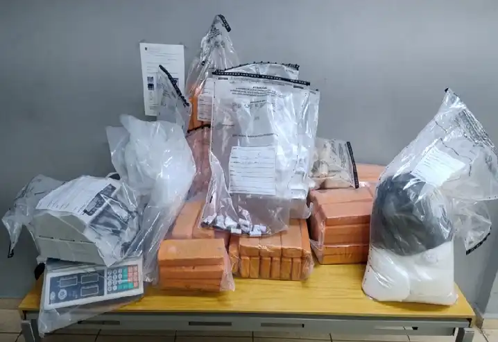 Segundo o B.O, ao todo foram apreendidos 67,3 kg de maconha, além de tijolos de crack, adulterantes, pasta base, haxixe, entre outros. Também foram apreendidas três balanças de precisão, uma faca e uma máquina contadora de cédulas.