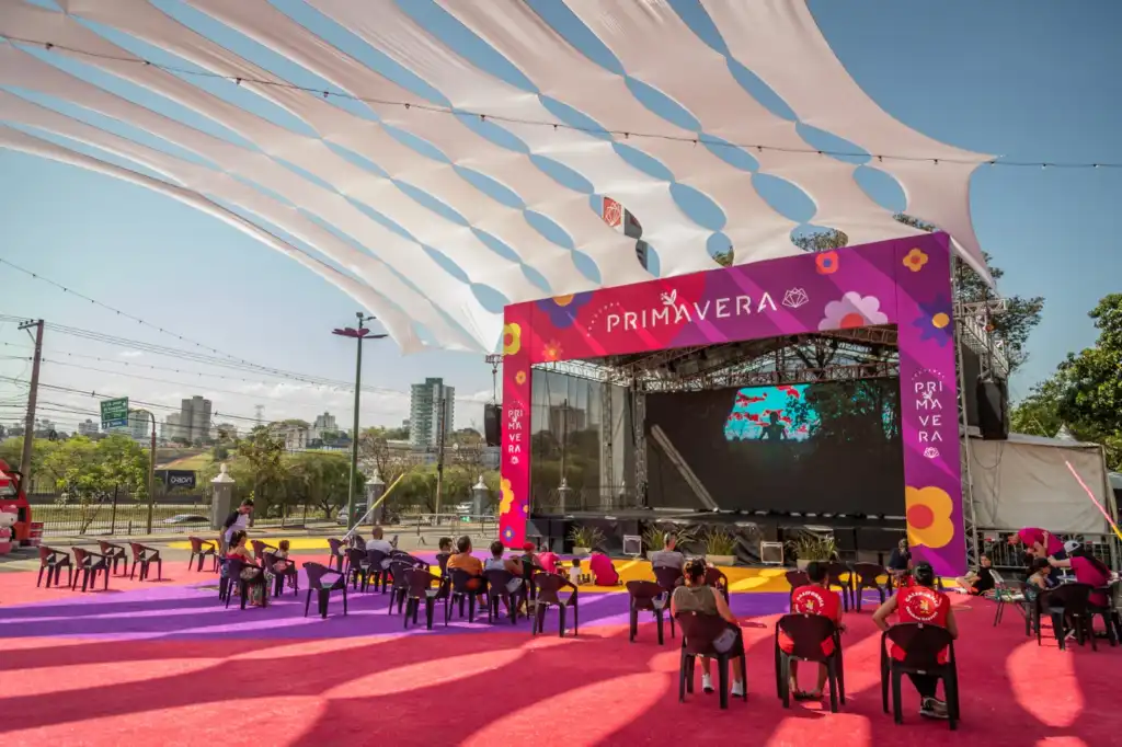 Decoração – Um dos destaques do Festival Primavera é a decoração, que é bem colorida para dar boas-vindas à nova estação. O gramado para o público assistir ao filme e dançar com as bandas é nas cores amarela, roxo e rosa, 23 postes de luz viraram flores.