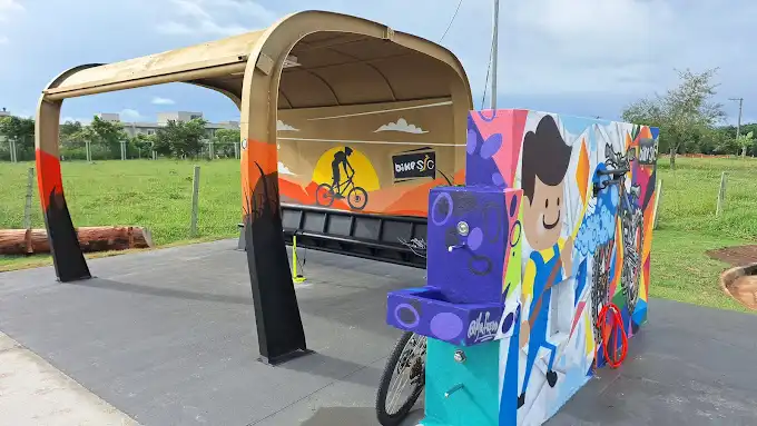 O bairro Urbanova agora tem o bike point, um novo espaço que possui alguns equipamentos que visam atender o ciclista para diversas necessidades, como banco, bebedouro (inclusive para pets), torneira para lavagem da bicicleta, calibrador de pneus e iluminação.