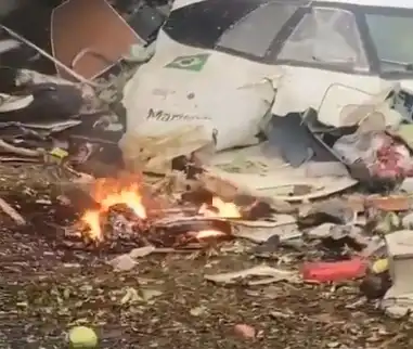 Vídeo mostra destroços incendiados de avião que caiu em Vinhedo